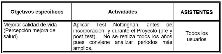 - Asistencia media mensual: Total ancianos en el Proyecto.